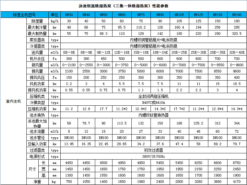 熱沙龍三集一體室內(nèi)泳池恒溫除濕熱泵產(chǎn)品特點(diǎn):