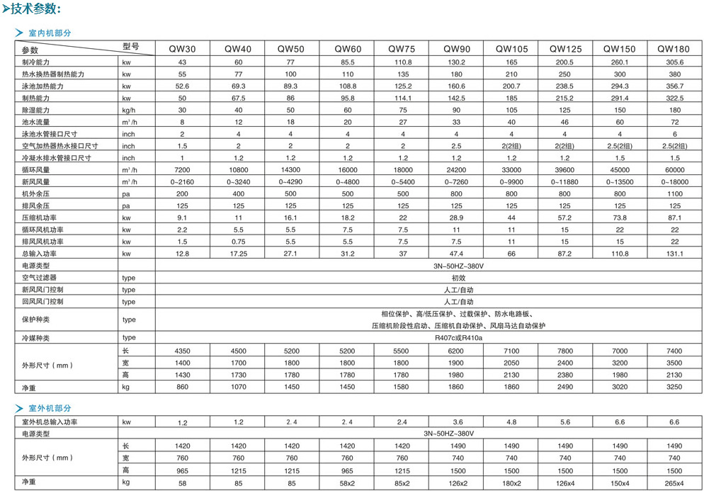 該系列產(chǎn)品為臥式三集一體除濕熱泵機組,帶池水熱泵輔助 加熱水冷冷凝器和室外機??赏瑫r控制室內(nèi)空氣溫濕度,具有除濕功能、空調(diào)制冷、制熱功能,池水輔助加熱功能和池水恒溫功能。池水初始加熱由鍋爐或空氣源熱泵或電加熱實施。